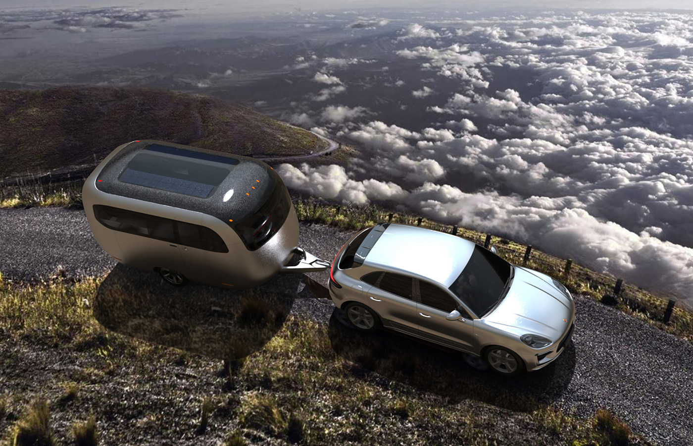 The trailer’s co-designer, Studio F.A. Porsche, has made some interesting design choices that set this trailer apart from other luxury camping trailers on the market. The trailer’s riveted design has been dropped to decrease drag, and it is made up of composite materials such as carbon fibre to help keep the weight down. The trailer’s improved aerodynamics further decrease the drag coefficient as compared to the already slippery Airstream trailers.