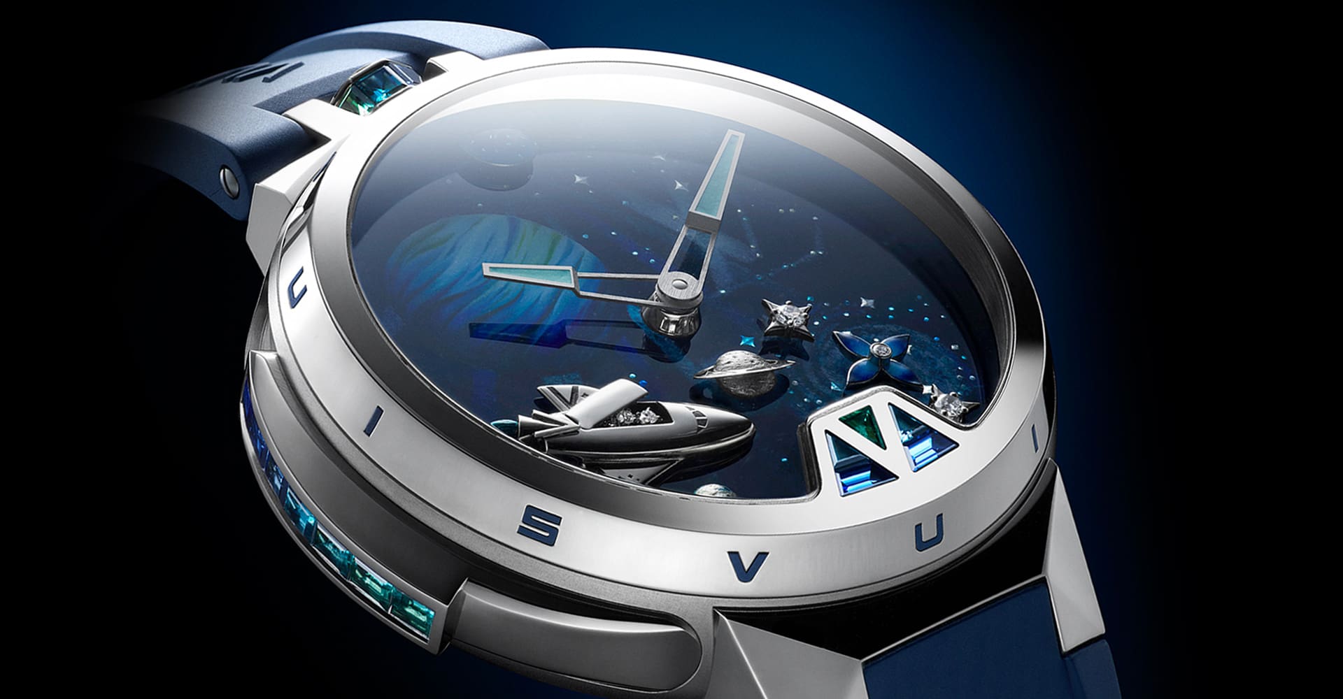 La Fabrique du Temps Louis Vuitton spent two years developing this exceptional timepiece to celebrate Louis Vuitton’s 200th birthday. It enlisted the creativity of renowned engraver Dick Steenman and enameler Anita Porchet to decorate the case and craft the dial elements. The watchmaker has successfully marked its path among traditional high-end Swiss watchmakers with this unique character, which blends traditional watchmaking techniques and contemporary, space-themed designs.