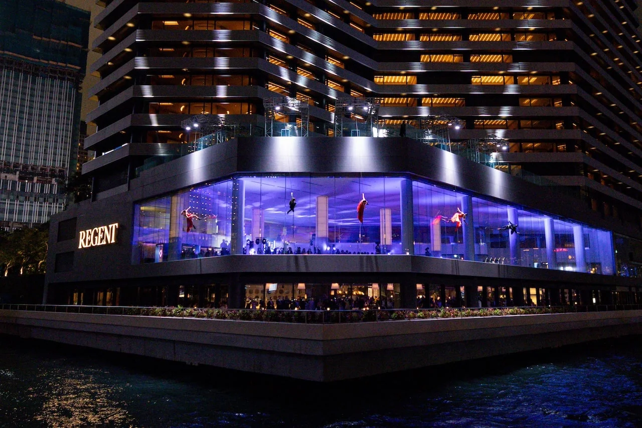 Regent’s reopening gala, attended by the city’s elite, marked the return of a cherished institution. Acrobatic dancers suspended from the building exterior enthralled guests, epitomising the flamboyance that complements Chi Wing Lo’s subtle sophistication.
